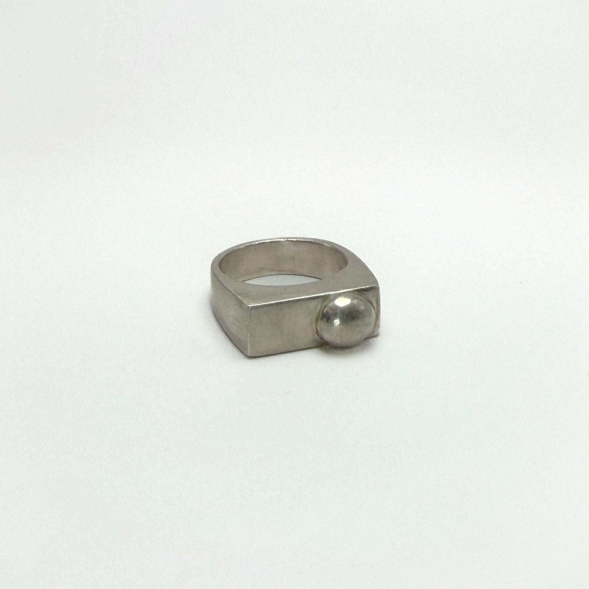 Épurée et graphique, la bague Orbe joue sur le contraste entre l’angle et la courbe.